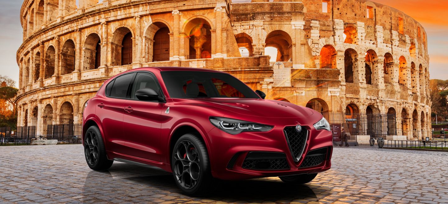 The Alfa Romeo Stelvio Quadrifoglio blends unmistakable style with race-bred engineering. Its Ferrari-derived 2.9L twin-turbo V6 and Q4 all-wheel-drive system deliver breathtaking performance and precision – launching from 0 to 100 km/h in just 3.8 seconds. Paired with an 8-speed automatic transmission and paddle shifters, every drive feels alive.
